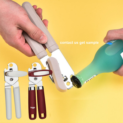 Tarro de cocina multifunción, perilla de giro fácil, abridor de botellas de vino y cerveza de mano, abrelatas Manual de borde liso de acero inoxidable